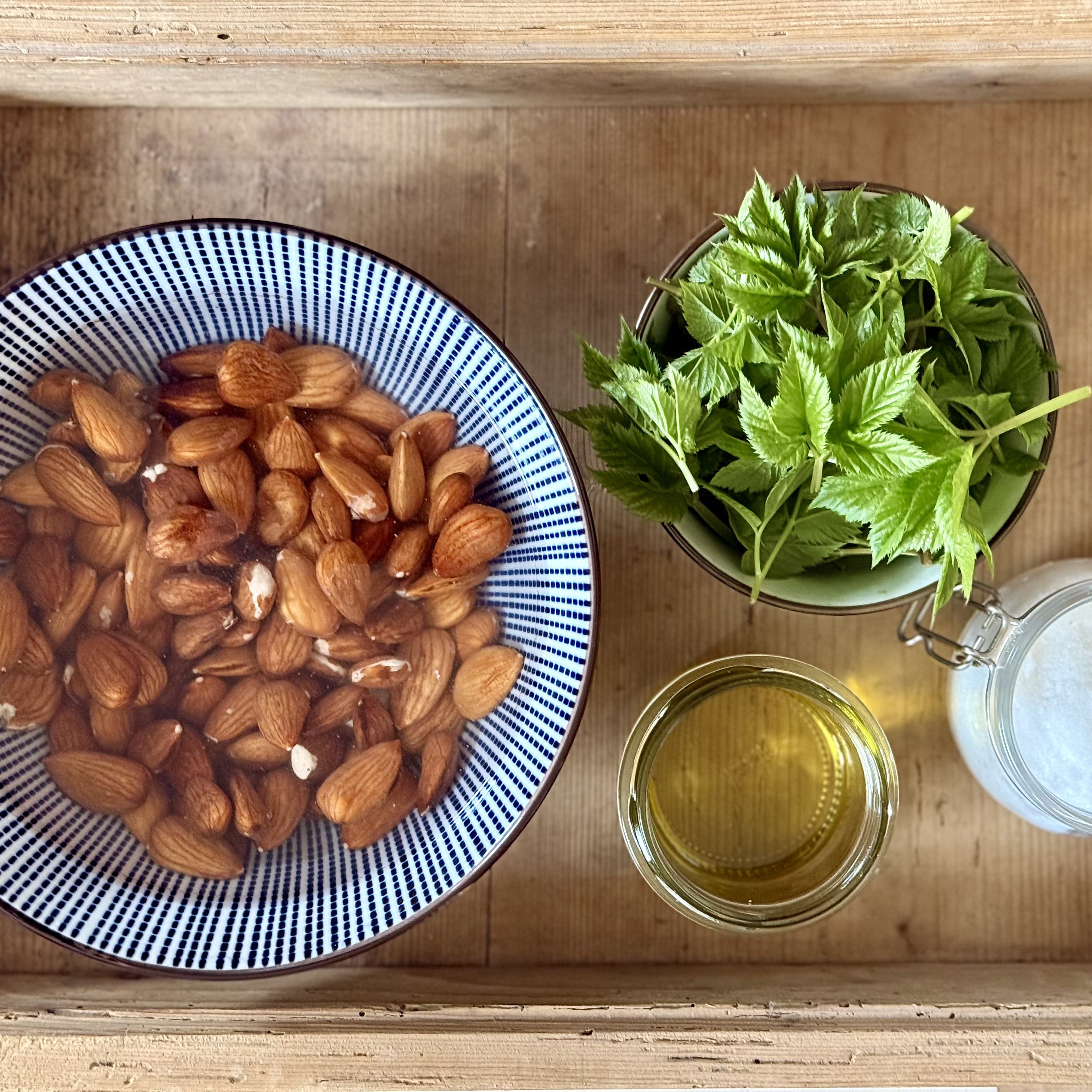 - Mandeln über Nacht mit frischem Wasser einweichen und am nächsten Morgen sorgfältig spülen