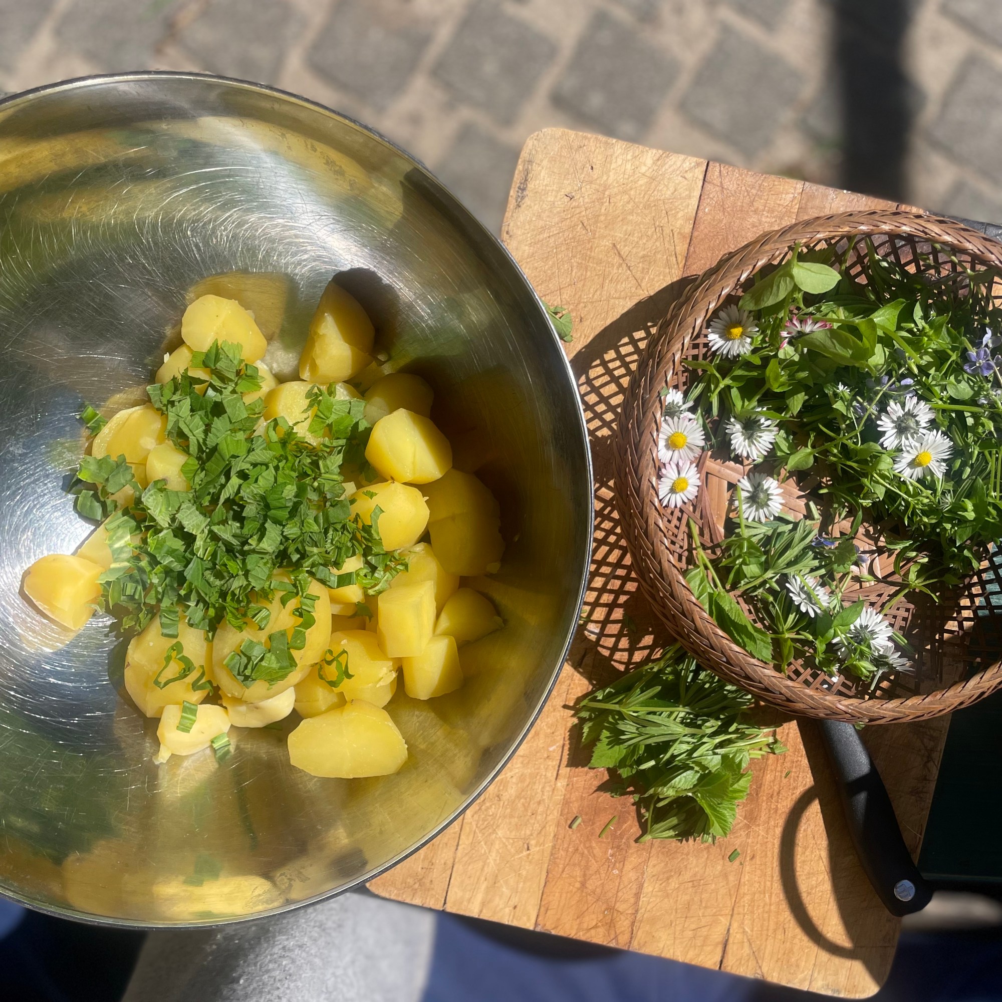 Junge, sehr zarte Brombeerblätter pflücken. Über Nacht antrocknen lassen. Am nächsten Morgen mit den Händen oder einem Nudelholz das Pflanzenmaterial anquetschen, so dass die Zellen geöffnet werden. Sehr sauber arbeiten (Hände und Arbeitsmaterialien reinigen)! Das Plfanzenmaterial auf einem frisch gewaschenen Baumwolltuch ausbreiten, mit Wasser leicht besprühen, so dass das Zellmaterial sehr feucht aber nicht nass wird. Dann in dem Tuch einschlagen. In einen Gefrierbeutel packen so dass die Feuchtigkeit nicht entweicht. An einem warmen Ort (sonnige Fensterbank) für 3-4 Tage fermentieren lassen. Das warme und feuchte Mikroklima regt Mikroorganismen dazu an, das Pflanzenmaterial zu fermentieren, also aufzuschließen und leicht zu verändern. So werden Nährstoffe besser zugänglich und der Geschmack intensiver und tiefer.